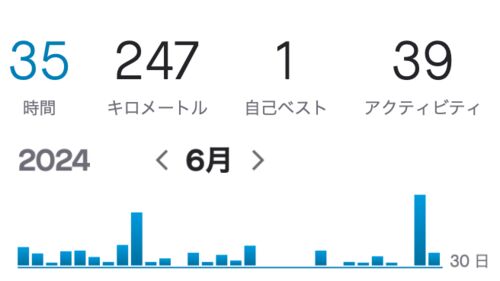 2024年も半分が過ぎた。Dan Dan遅くなっていくオラの走力とは正反対に、時が経つのがDonDonはやくなっていく 6月の走行距離は247km 「あと3km走れば、250kmで区切りが良かったのに、残念」 以前はそんなことを思っていたが、いまはそんな無理はしないことに…