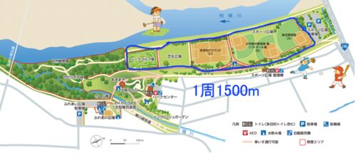 最近のジョグコースは、自宅から2kmほど離れている三川公園。この公園にはパークゴルフのほか、野球場、サッカー場などもあり、ジョグに適した周回コースがある。 こんなところ。 青い線をぐるっと走ると約1500m。整地もあるが、不整地をエリアを選んで走る…