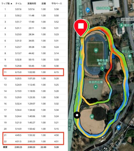 先週に引き続き今週も練習会に参加してきた。メニューはやはり時間走。先週は180分間走だったが、今週は120分間走。1週間前に3時間走っているので、1時間短いだけでも気が楽。でもその分ペースを上げて走らないと!そんな気持ちで参加してきた。結果はこちら…