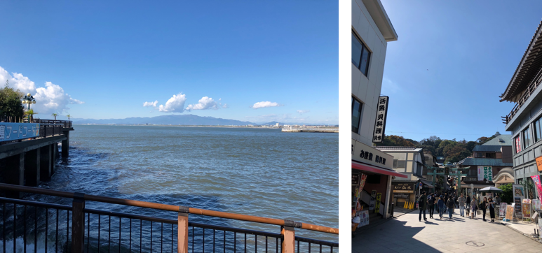 ちょうど10㎞走って、江ノ島に到着。日曜日の天気が嘘のよう。観光客も多い。