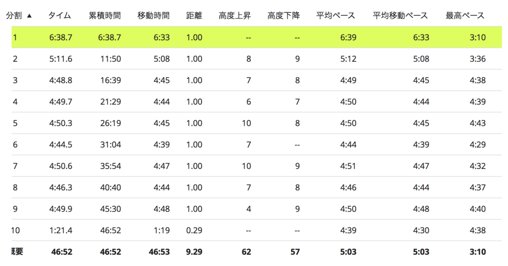 注:黄緑のマーカー部分は最初のジョグ1.2㎞