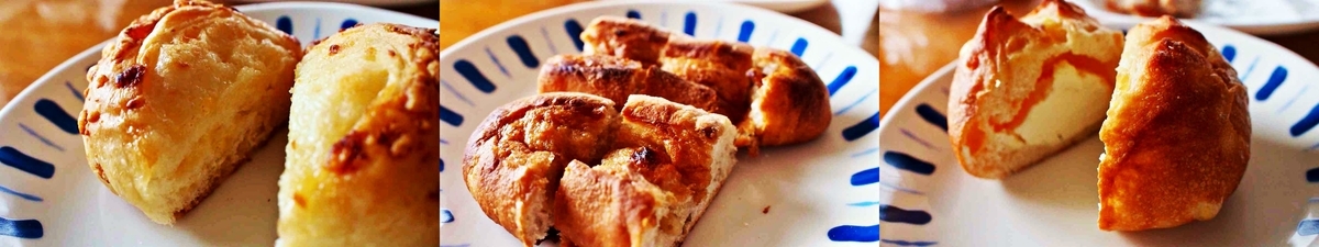今朝は、相方が職場で焼いてきたパンの残りもの。