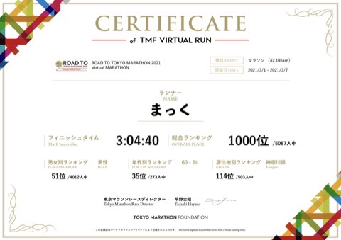 東京マラソン2021の出走権が当たるヴァーチャルなレースにエントリーしていたけど、やっぱりハズレ!