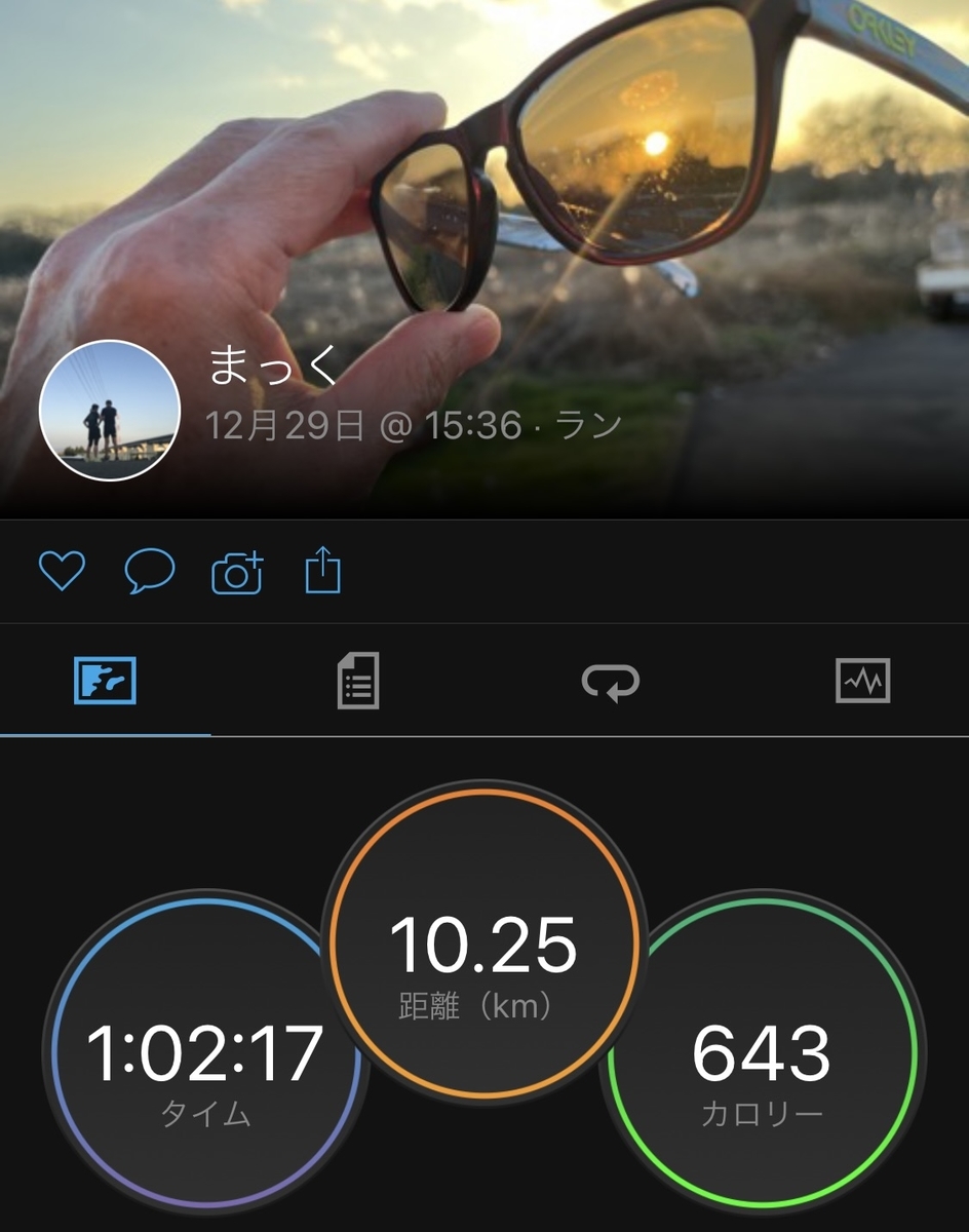 マイルームがスッキリしたところで、ぼっちジョグへ。グローブを持っていったが、必要ないぐらい暖かった。河川敷は西日がキツいのでオークリーのサングラスは必需品。