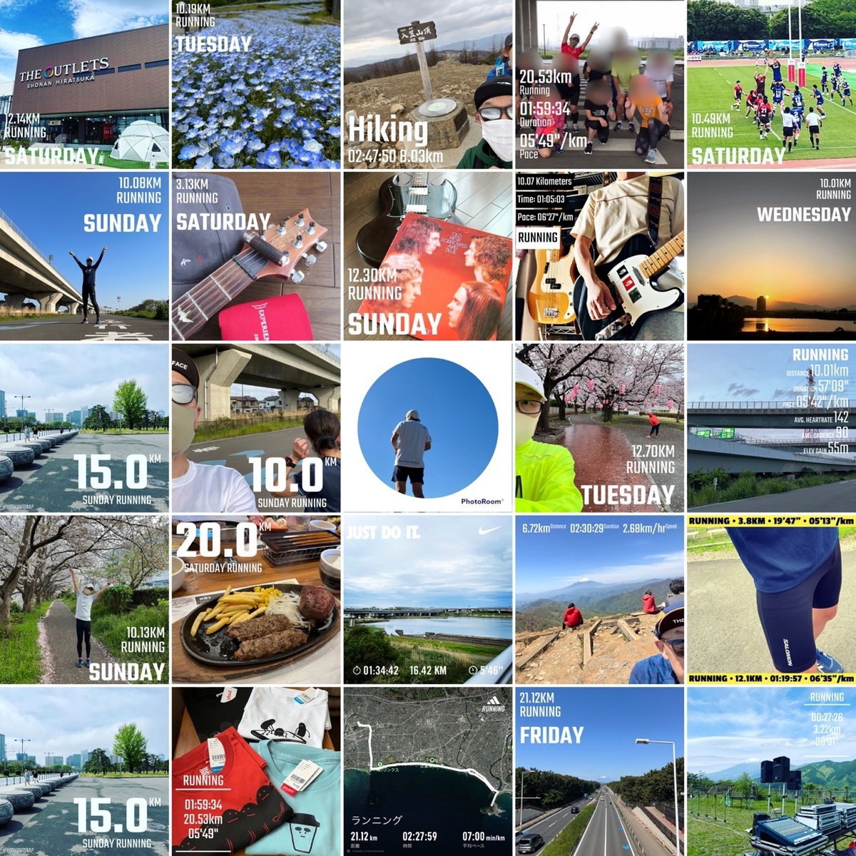 12月、1月、2月、3月とほとんど走らずウォーキングと体幹ストレッチのみ。4月から少しずつ身体を動かし、練習会のメンバーとハイキングに行ったり、ジョギング+ウォーキングの日々を過ごした。