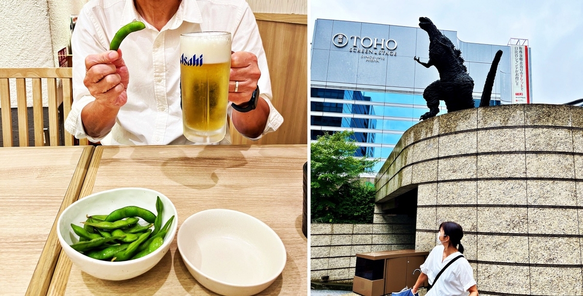 画像右:「頭上にGODZILLAがいるぞ!」と言ったら、振り返って驚く相方😆