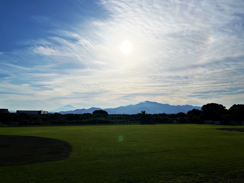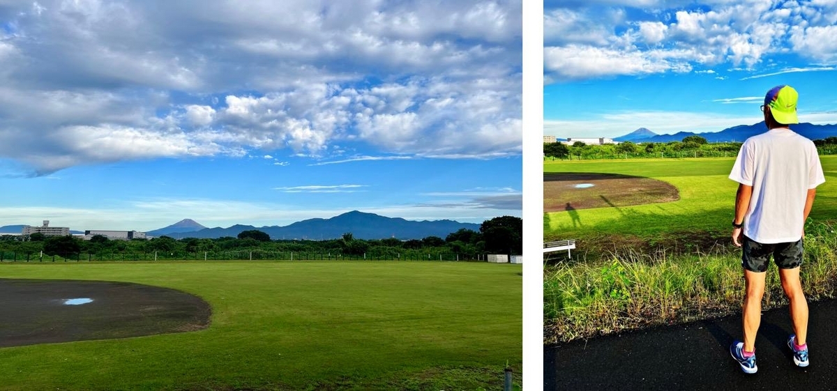 翌日7/2、練習会には参加せず、夫婦で早起きしていつもの河川敷をJOG。山開きした富士山がくっきり、鮮やかに見えたよ。今年は登りたいなぁ。3度目のMt.FUJI。