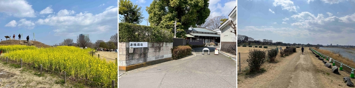 自宅からスーパーまでの距離だと走り足りないので、リュック背負って三川公園→泉橋酒造経由でスーパーへ。三川公園の菜の花がとてもキレイだったよ。ちなみにあまり知られていないけど、泉橋酒造では平日に食事もできるよ🍶