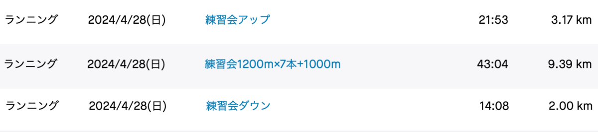 4/28 練習会1200m×7本+1000m