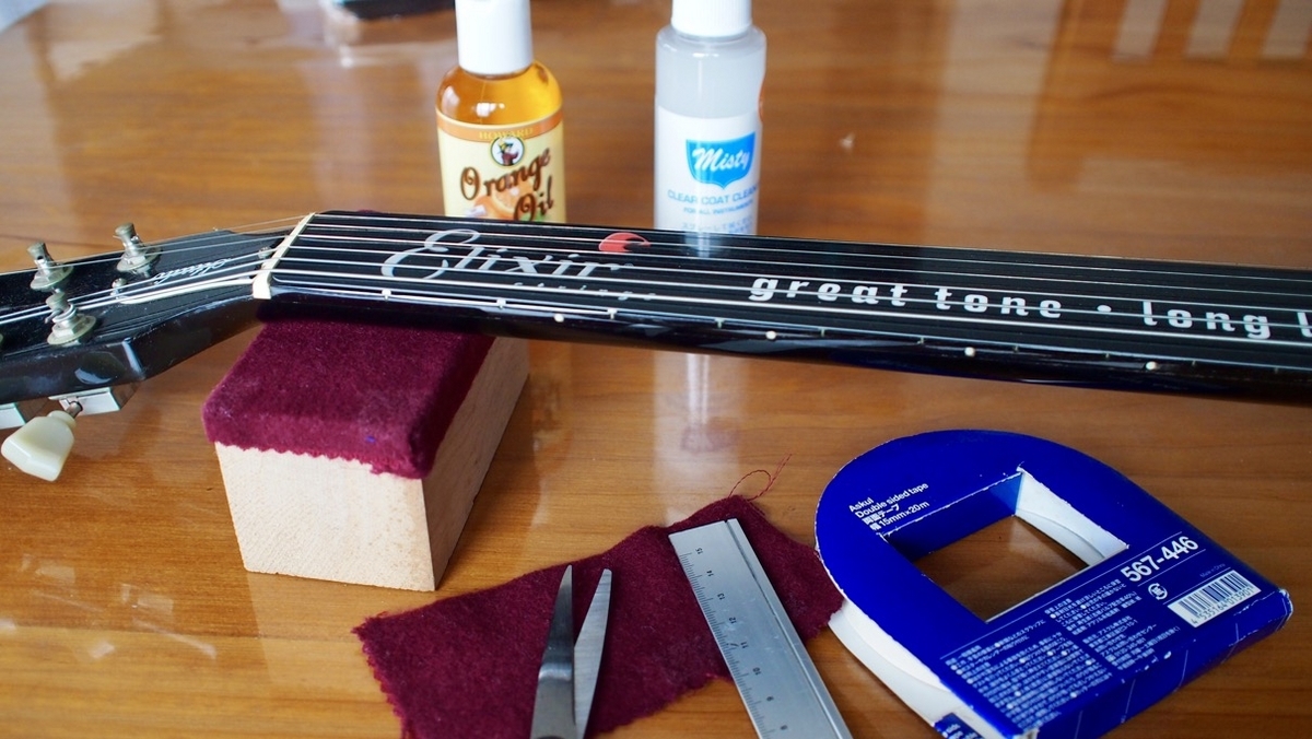 ジョグから戻ってきてからは、大好きな曲(アルバム)を聴きながらノンビリとギターのメンテナンスをすることに。その前にメンテナンスに不可欠のギターピローを手作りした。木材をカットして、フェルトを貼っただけだけど(笑)買うと高いので💦