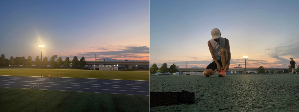 この日は夜の練習会に参加。トラック内の芝生エリアでストレッチ&アップをして、トラックでインターバル走(200m×10本+800m)久しぶりに刺激いっぱいの練習だったよ。