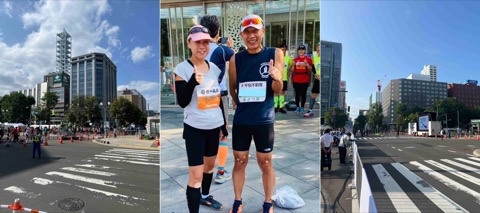 青空宴会でまた会いましょう!と解散。そのあと「北海道を走ろう会」の撮影場所でジャスミンさんと合流。荷物を預けたあと「頑張りましょう!」とスタートブロックに向かった。