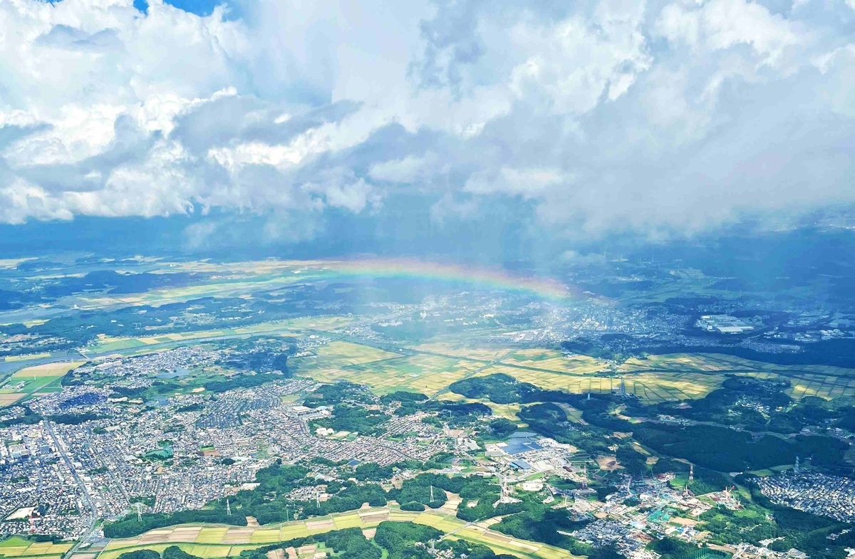 最後に羽田空港に向かう飛行機の機内からみた虹の画像でも。