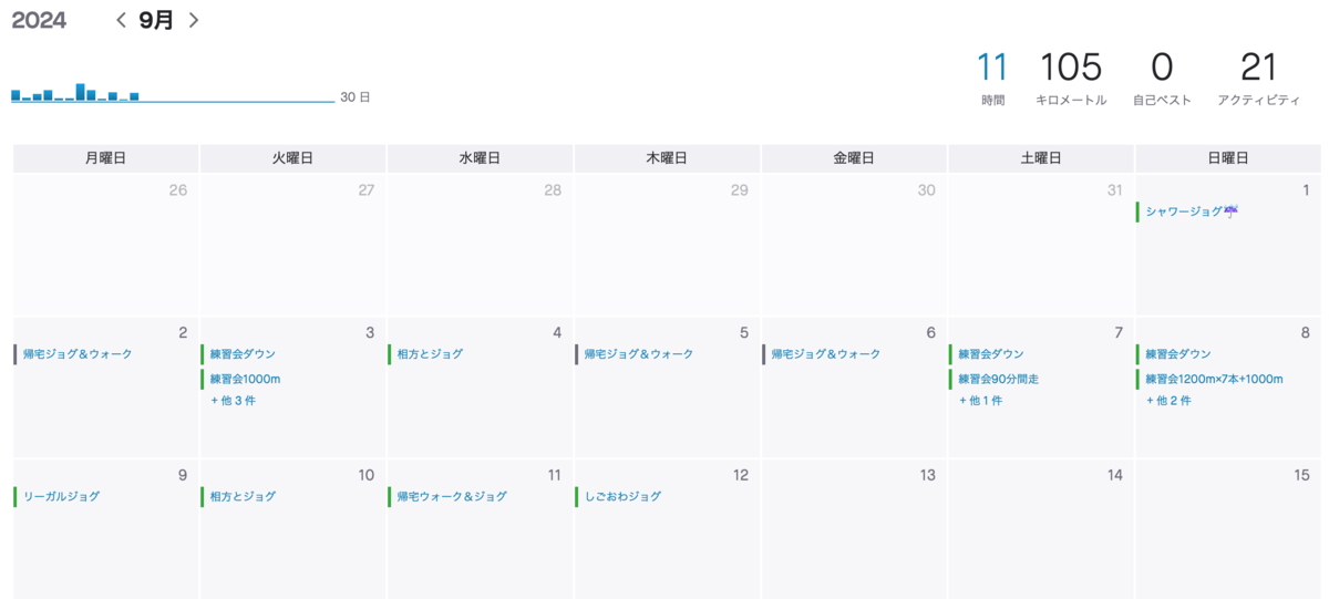 今週末からの3連休は朝から晩まで仕事で走れないので、今日までコンスタントに走っている。ひと駅前下車からのリーガルジョグを含めてだが…。