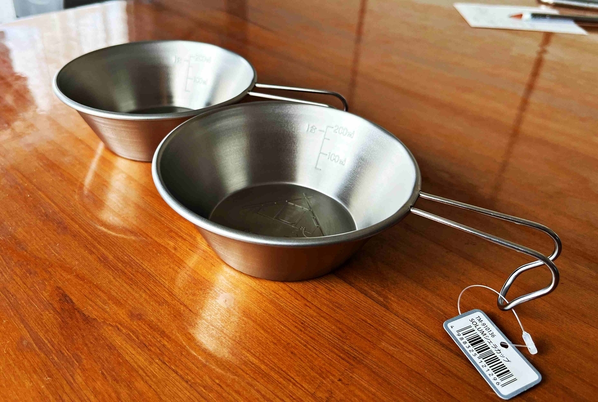 軽量カップ、食器、さらに錆に強いステンレス製で直火もOKなのでクッカーとしても使える万能MONO。何より軽量なのでカラビナに付けられるのが👍